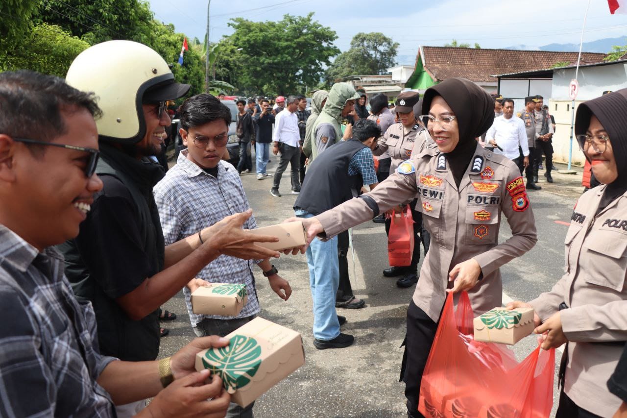 Menariknya, aksi ini juga diwarnai momen humanis ketika Polisi Wanita (Polwan) Polres Luwu Timur membagikan makanan dan minuman kepada peserta unjuk rasa. Hal itu menjadi gambaran bahwa kehadiran aparat tidak hanya untuk menjaga ketertiban, tetapi juga untuk menunjukkan kepedulian dan sikap melayani.