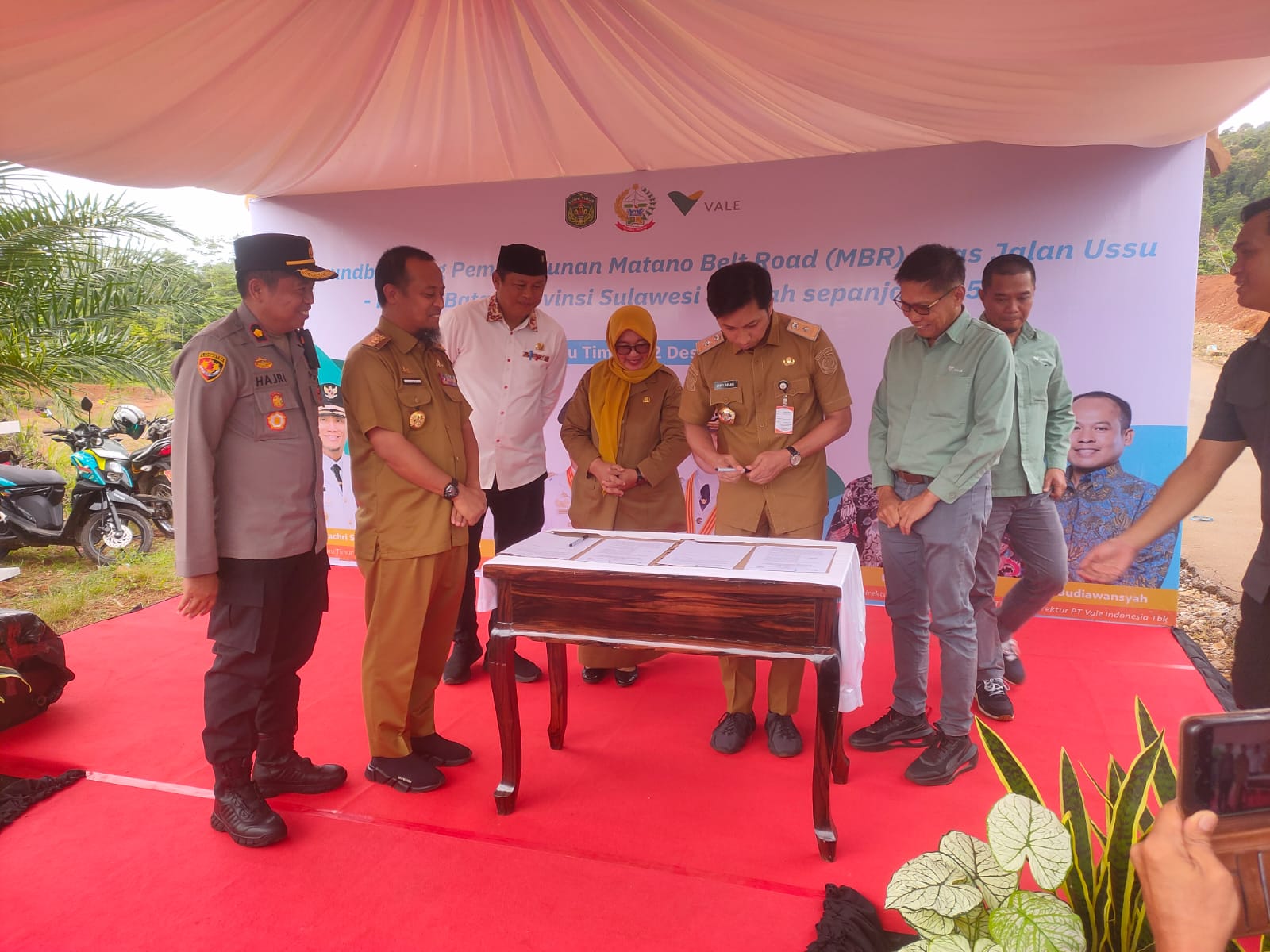 Usai sambutan, kegiatan dilanjutkan dengan penandatanganan MoU dan Perjanjian Kerja Sama (PKS) antara PT Vale Indonesia dan Pemerintah Provinsi Sulawesi Selatan, kemudian dilanjutkan dengan penekanan tombol sebagai tanda resmi dimulainya pembangunan Jalan Ussu–Malili ke pesisir Danau Matano hingga batas Provinsi Sulawesi Tengah. (*)