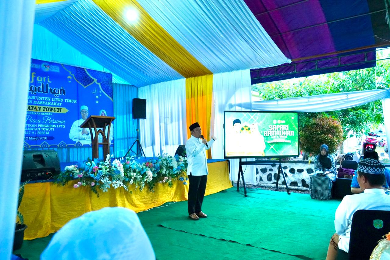 Hal itu disampaikan saat menghadiri Safari Ramadan 1447 H/2026 yang dirangkaikan dengan buka puasa bersama masyarakat di Halaman Rumah Jabatan Camat Towuti, Kamis (12/03/2026).