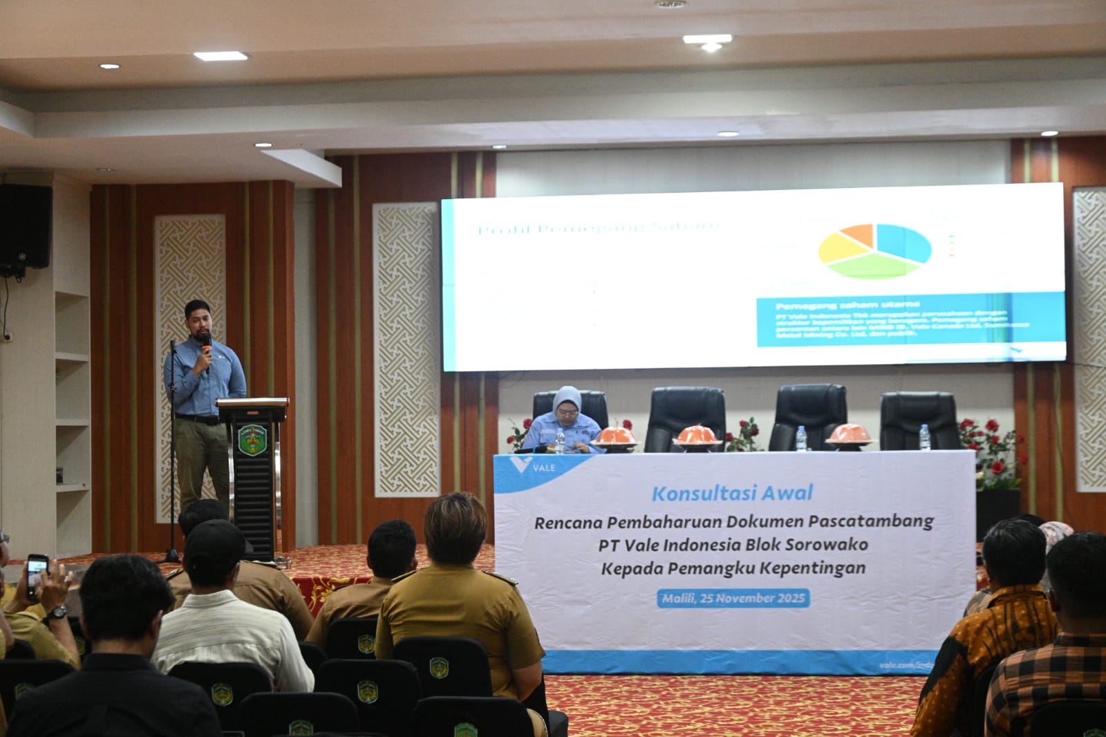 Langkah awal yang dilakukan dengan berkonsultasi melibatkan pemangku kepentingan Luwu Timur, di Aula Sasana Praja Kantor Bupati, Selasa (25/11/2025). Upaya transparansi tersebut sebagai alah satu tahapan penting dalam penyusunan pembaharuan dokumen pasca tambang.