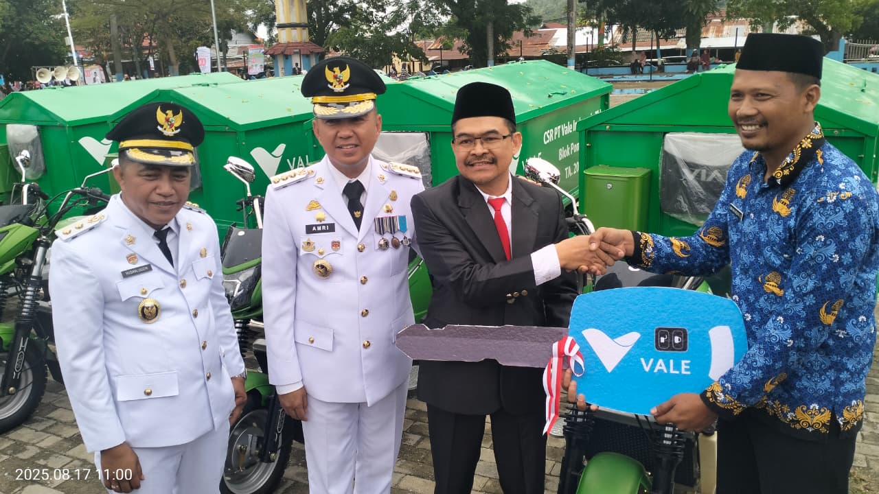 Sebagai wujud komitmen keberlanjutan, PT Vale melalui IGP Pomalaa menyerahkan empat unit kendaraan roda dua pengangkut sampah kepada Pemerintah Kabupaten Kolaka. Bantuan diserahkan oleh Andi Nur Taslim, Senior Manager Operational Readiness IGP Pomalaa, kepada Bupati Kolaka, Amri Djamaluddin, didampingi Wakil Bupati Husmaluddin, usai mengikuti upacara peringatan HUT RI di Alun-Alun 19 November. “Dengan bantuan ini, kami berharap dapat bersama-sama menjaga kebersihan lingkungan agar masyarakat dan perusahaan bisa berkembang berdampingan,” ujar Andi Nur Taslim.
